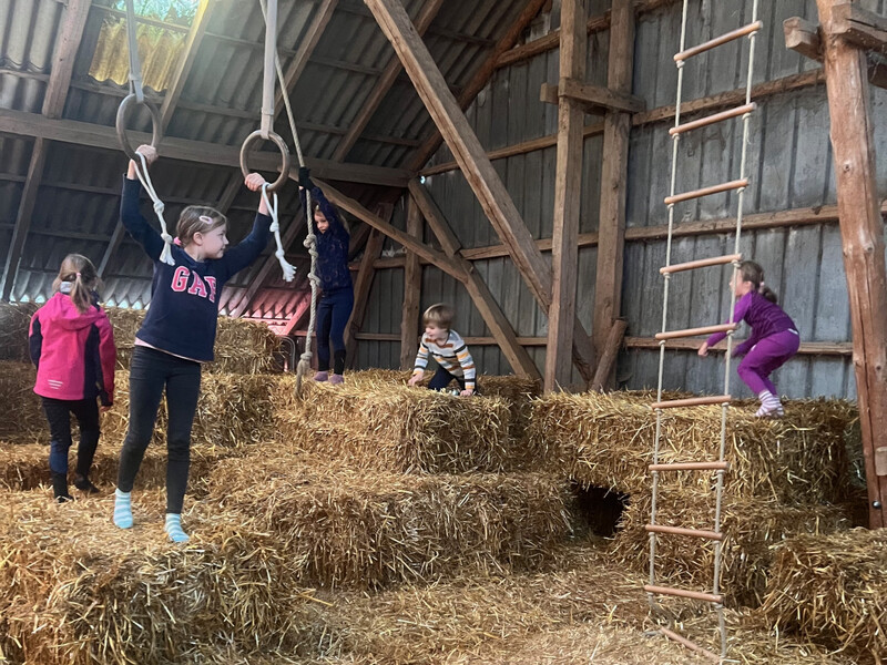 Unser neu gestalteter Strohboden stellt einen ganz besonderen Reiz für die Kinder dar. Am langen Seil schwingen und sich ins Stroh fallen lassen, Höhlen bauen oder Strohschlachten veranstalten sind für die Kinder ein Highlight. Ein Abenteuer sind die Nächte im Stroh - wer ist mutig und hält bis zum Morgen durch?
