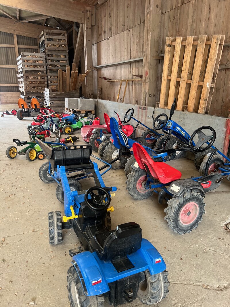 Unzählige Fahrzeuge beleben unser Hofgelände, von Trettreckern, Riesengokarts, Rollern, Bobbycars bis zu Laufrädern und Fährrädern. So mancher Papa fühlte sich zu einem Go-Kartrennen herausgefordert.