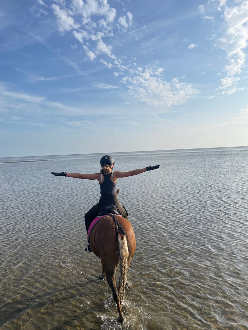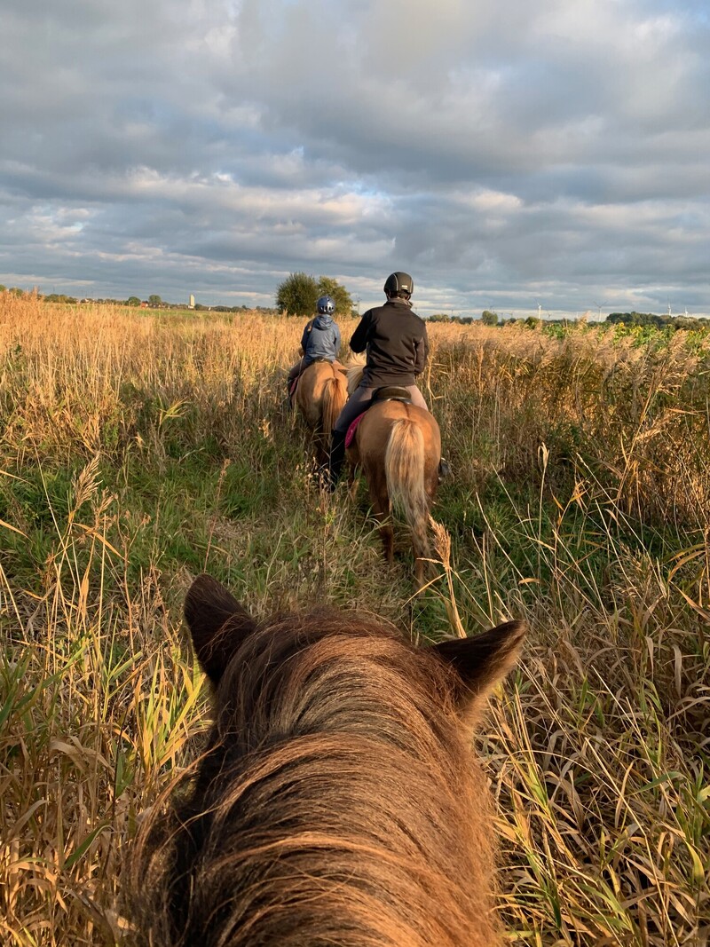 Ausritte in der Natur bieten die ideale Gelegenheit, die Umgebung kennen zu lernen und sich zu entspannen. Die weitläufige Landschaft lädt zu unterschiedlichen Touren ein, während die langen Galoppstrecken am Außendeich besonders für Tempo-Liebhaber attraktiv sind. Frische Luft, offene Flächen und das gleichmäßige Tempo des Pferdes machen einen Ausritt zu einer angenehmen Möglichkeit, aktiv Zeit in der Natur zu verbringen. Ein Erlebnis, das Reiter und Pferd gleichermaßen Freude bereitet.