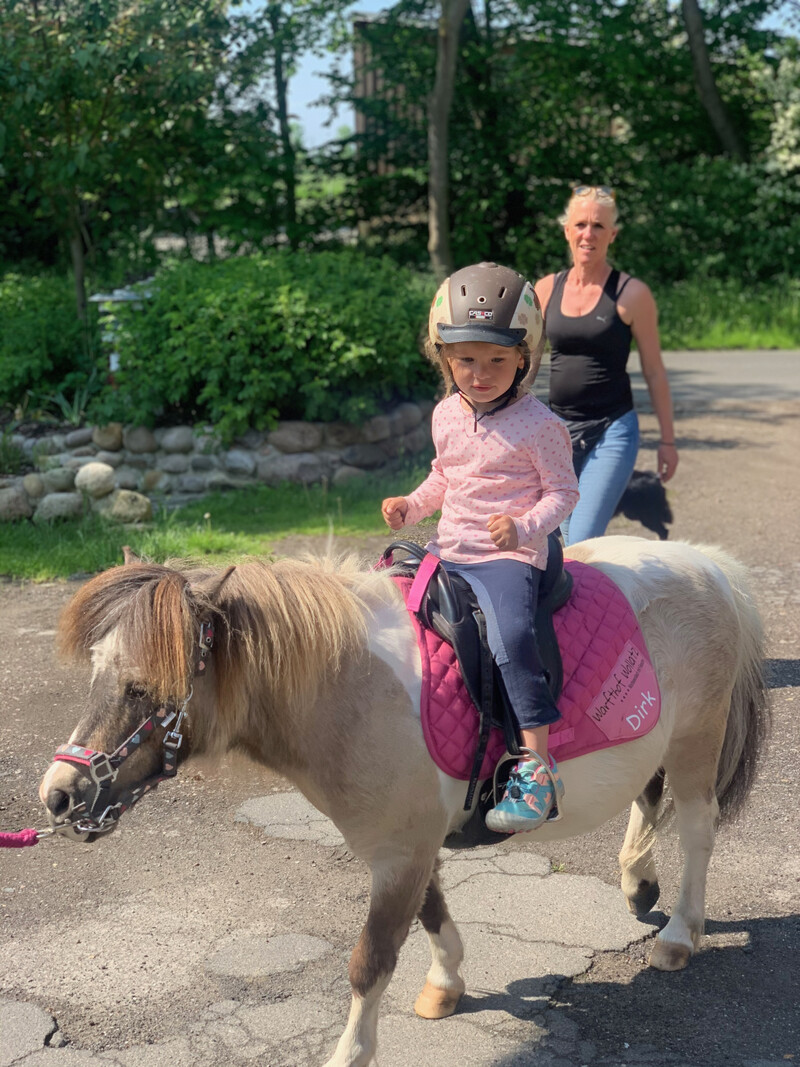 Wir bereiten das Pony für euch vor und die Führ- Kinder werden von einem Erwachsenen (meistens einem Familienangehörigen) geführt. Unsere Führponys sind ältere, sehr ruhige Tiere, jedoch führt ihr die Ponys auf eigenes Risiko. Für den gemeinsamen Spaziergang mit Pony und Reiter